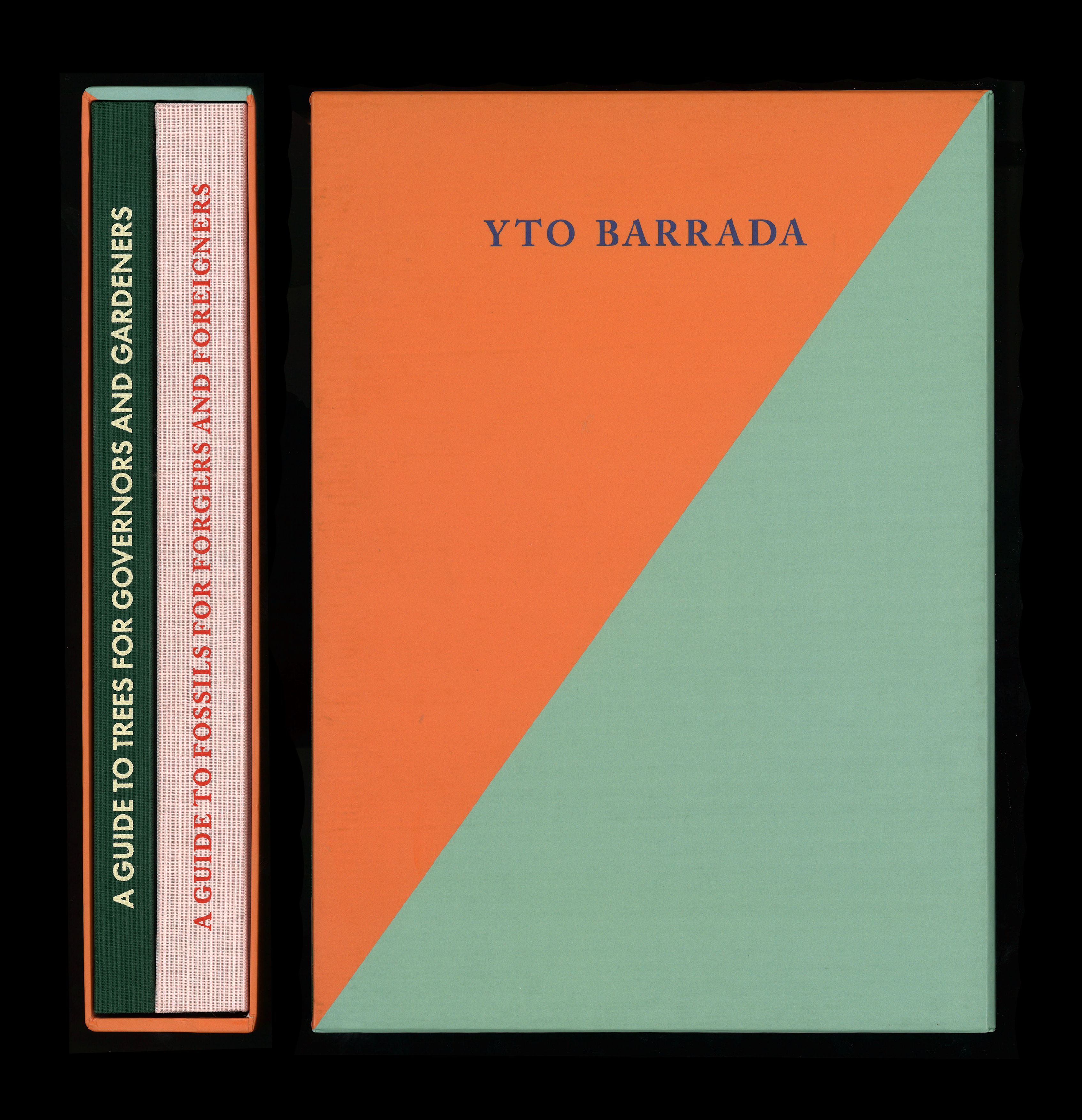 Designed for artist Yto Barrada, A Guide to Trees + A Guide to Fossils is a striking two-volume set that brings together two of Barrada’s satirical artist books. A Guide to Trees for Governors and Gardeners humorously offers advice to urban landscapers on how to prepare cities for dignitaries, gradually revealing the absurdity behind the seemingly patriotic facades.